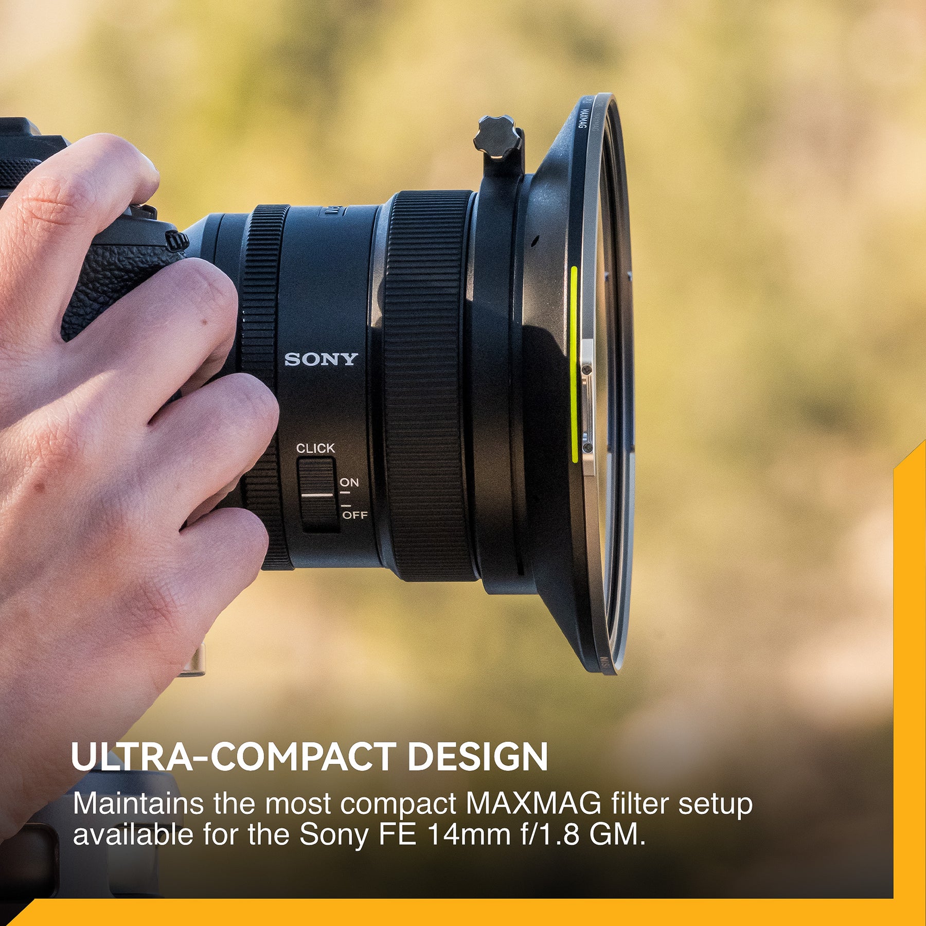 Fast, Secure Mounting for Sony FE 14mm f/1.8 GM: A precision clamping ring allows the adapter to be installed or removed quickly while maintaining a rock-solid fit. Once mounted, the adapter becomes a stable foundation for JetMag Pro MAXMAG filters, ensuring reliable performance in demanding shooting environments.