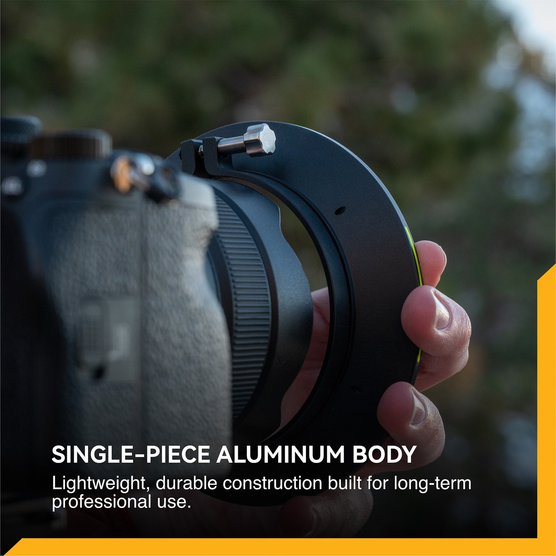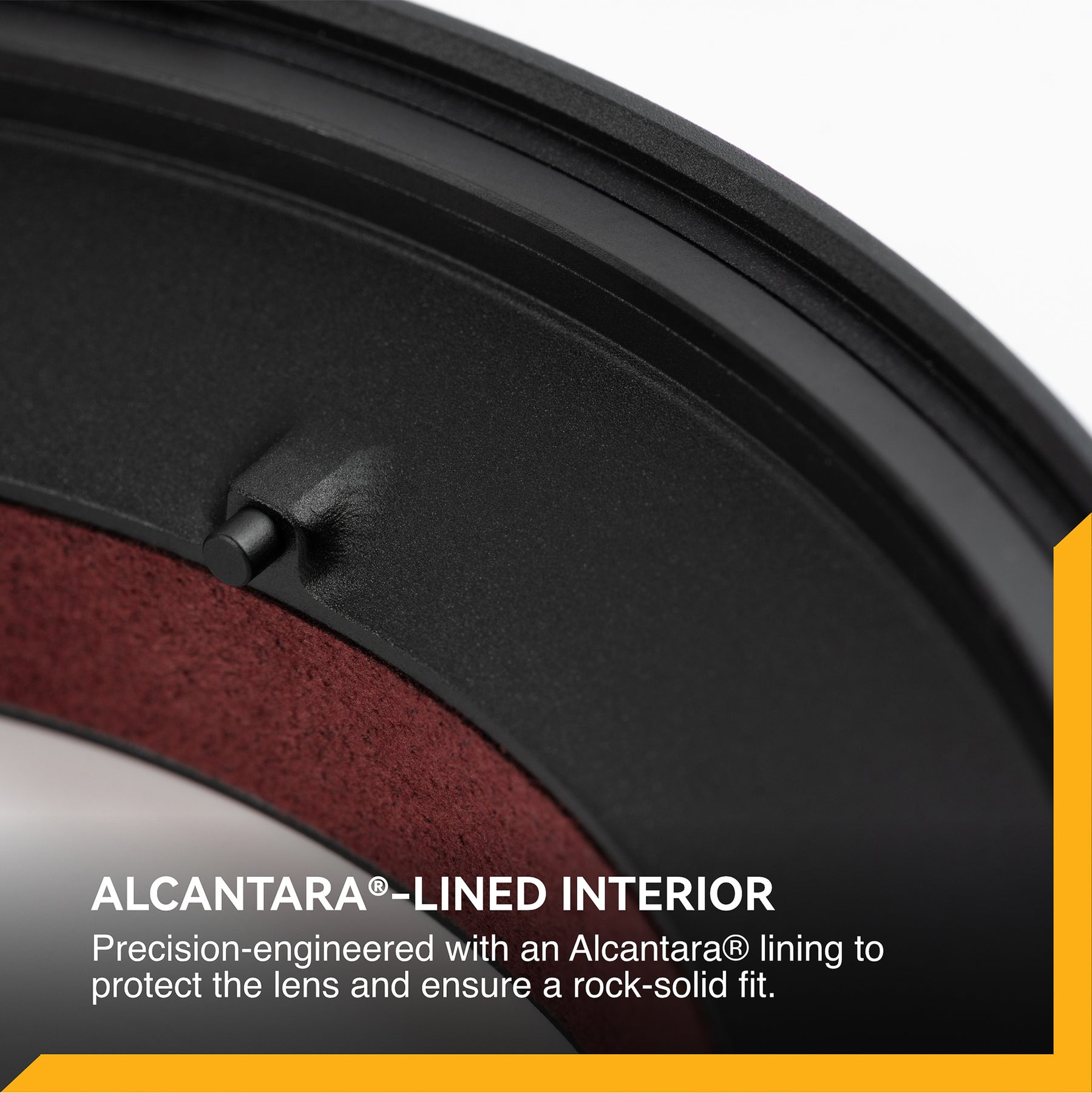 Premium Materials and Lens Protection: An Alcantara®-lined interior protects the lens barrel finish while maintaining a secure grip. The single-piece aluminum body delivers long-lasting durability while keeping overall weight to a minimum.