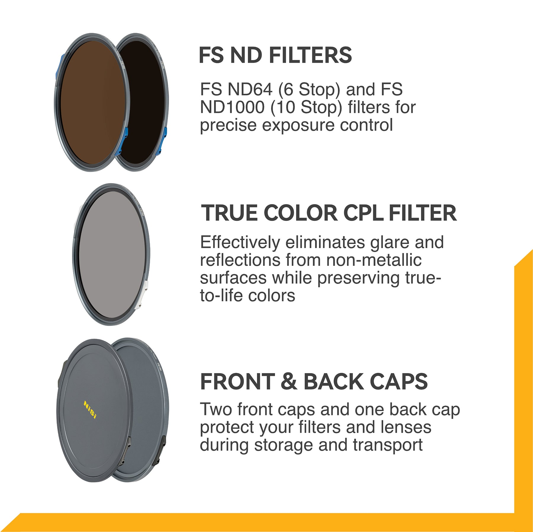 The JetMag Pro Landscape ND Kit is a must-have for any landscape, seascape or architecture photographer or anyone looking to experiment with long exposures. It includes NiSi's best selling True Colour circular polariser for enhancing saturation and contrast or removing glare and reflections. The combination of 1.8 and 3.0 FSND filters allows you to achieve your desired shutterspeed using a single filter, or in combination. The different combinations can yield a combined density of 6, 10 or 16 stops of filtering. The Landscape ND kit is our favourite lot and our #1 recommendation for long exposure photography.