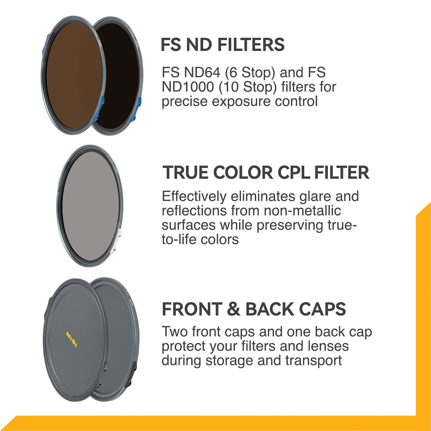 The JetMag Pro Landscape ND Kit is a must-have for any landscape, seascape or architecture photographer or anyone looking to experiment with long exposures. It includes NiSi's best selling True Colour circular polariser for enhancing saturation and contrast or removing glare and reflections. The combination of 1.8 and 3.0 FSND filters allows you to achieve your desired shutterspeed using a single filter, or in combination. The different combinations can yield a combined density of 6, 10 or 16 stops of filtering. The Landscape ND kit is our favourite lot and our #1 recommendation for long exposure photography.